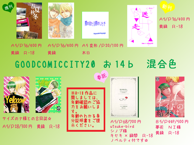 昨日は、GOODCOMICCITY20にて、当スペースにお立ち寄りくださった皆様、本当にありがとうございました。