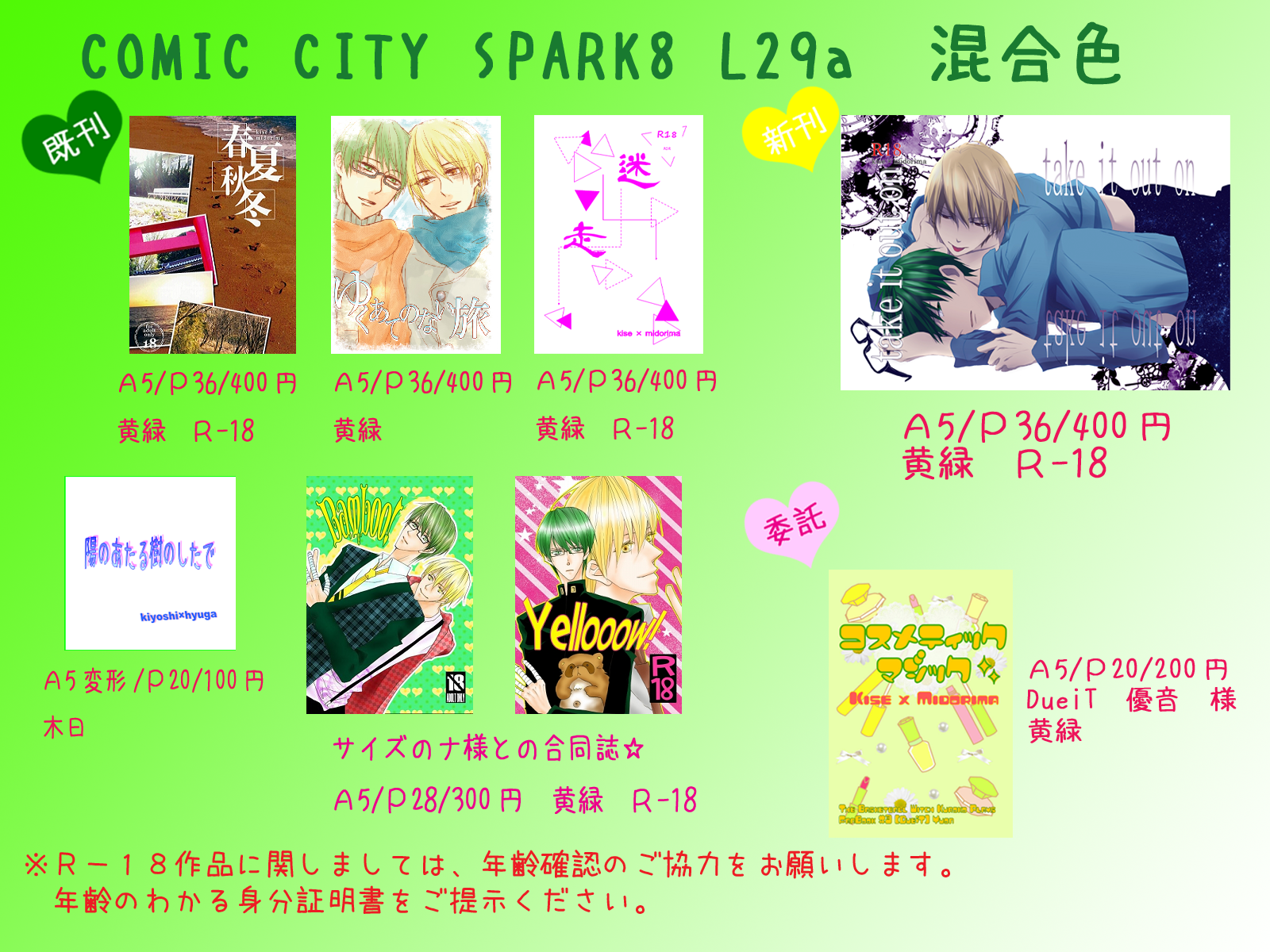 コミックシティスパークは、去年、初めてくろばす(黄緑)でスペースをとった、混合色にとっては記念すべきイベントでして。