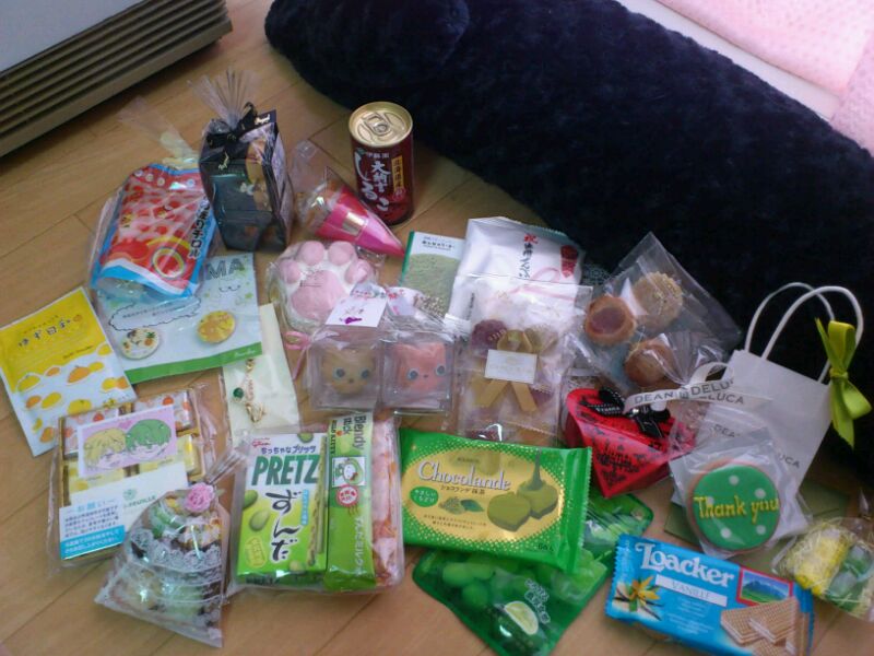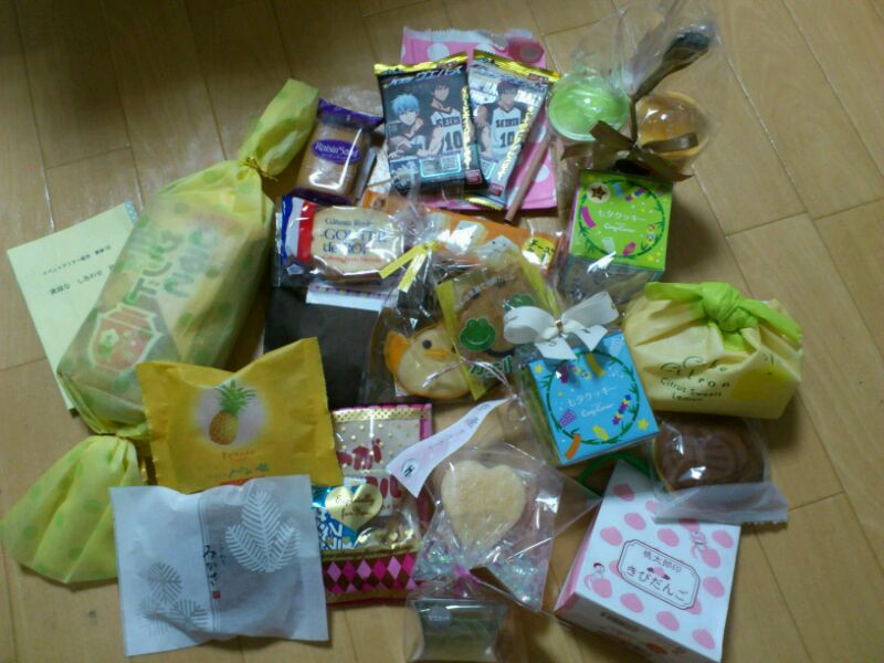 黒バススペの参加が中止になってしまったので、振り替えで別ジャンルでのサークル参加だったのに、お友達からたくさん差し入れをもらってしまったという(笑)
